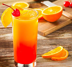 A wonderful mixture of freshly squeezed orange juice, and tequila topped with a dash of rolanberry.
